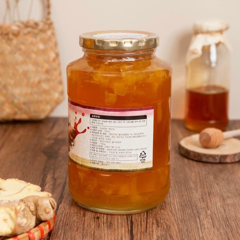 Mật ong gừng Hàn Quốc được làm chủ yếu là gừng tươi và mật ong. Rất tốt cho tiêu hóa và các chứng rối loạn tiêu hóa, lạnh bụng, buồn nôn, tiêu chảy. Mật ong gừng cũng có tác dụng làm ấm người và tăng cường tuần hoàn máu.
