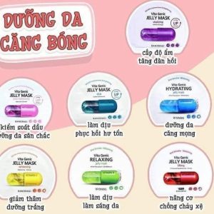 - Loại: ĐỎ – LIFTING , XANH LÁ – RELAXING , VÀNG – WHITENING , XANH DƯƠNG – HYDRATING , HỒNG – PORE TIGHTENING , XANH LỤC – CICA , TÍM – VITALIZING.