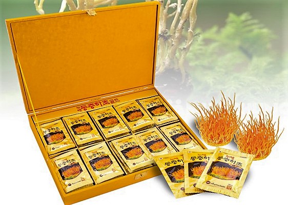 Nước đông trùng hạ thảo kanghwa bio-silkworm cordyceps – hộp gỗ vàng 60 gói, là sản phẩm được chiết xuất từ đông trùng hạ thảo .
