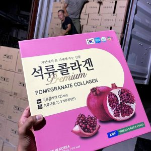 Tinh chất nước lựu collagen Hàn Quốc kích ứng da, giúp da không bị khô, hiệu ứng cân bằng trên da, giúp tế bào trao đổi chất tối ưu, tinh chỉnh các lỗ chân lông và đảm bảo làn da mềm mại. Bạn hãy bổ sung nước ép lựu collagen hàn quốc vào thực đơn nước uống của mình vì nó chứa nhiều thành phần ôxy hoá rất tốt cho sức khoẻ và làm đẹp da. Lựu có chứa chất flavonoid có tác dụng chống kích ứng da. Dầu chiết xuất từ hạt lựu có tác dụng làm dịu da bị kích thích và khắc phục tình trạng da khô. Chiếc xuất từ thịt quả lựu tham gia vào quá trình cân bằng loại da hỗn hợp, lọc và làm sạch lỗ chân lông và tái tạo da mới.